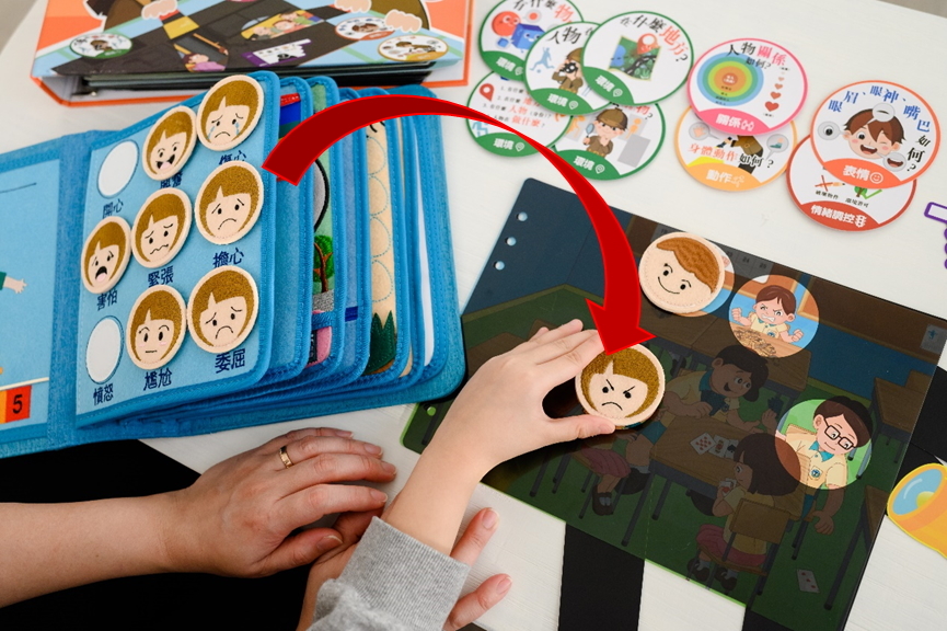 兒童可用【冷靜法寶】中的情緒面容,解答【情緒大搜查】中的人物情緒。