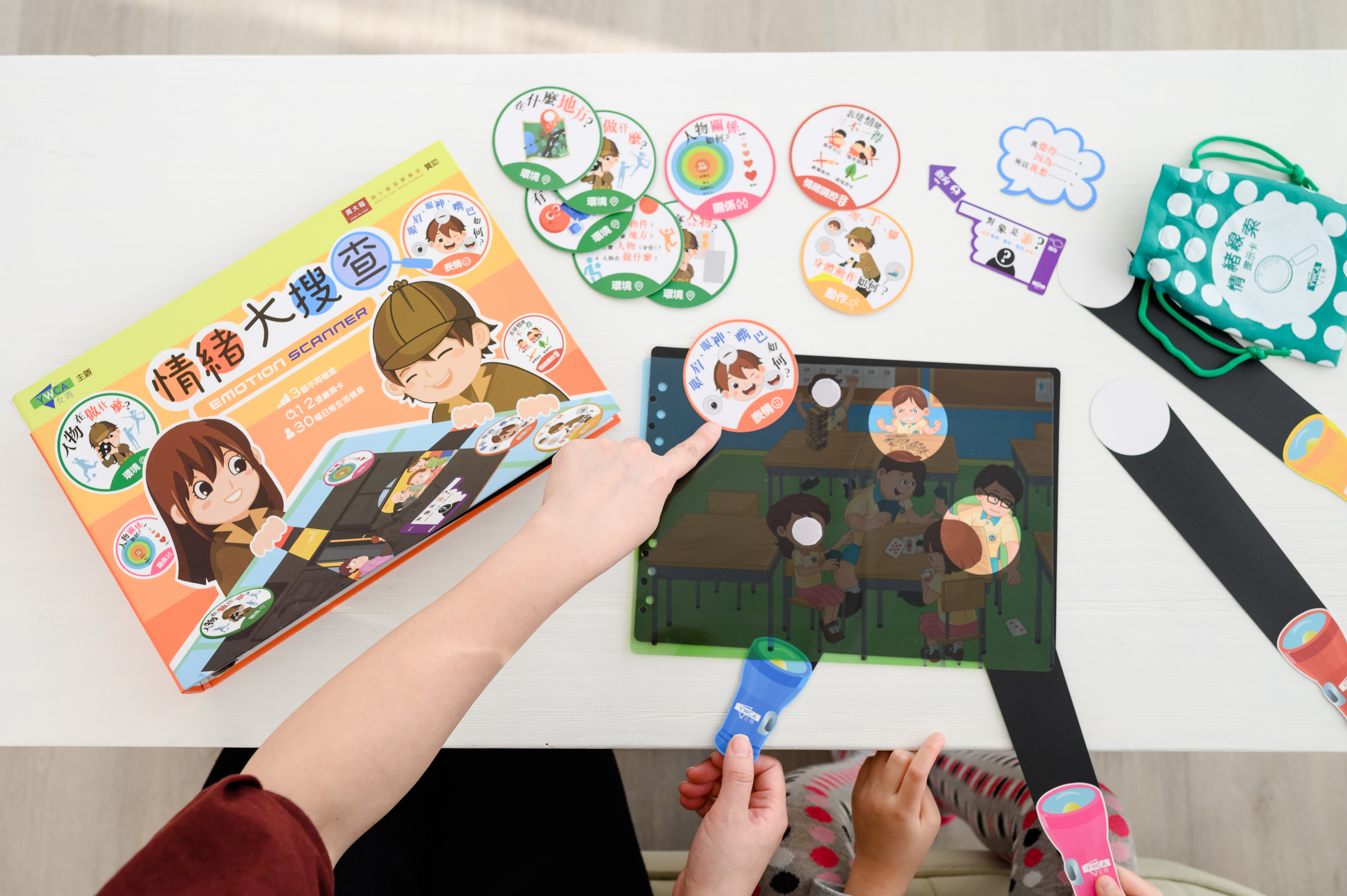 此套裝可讓兒童以由【情緒大搜查】認識不同情緒和明白情景與情緒的關係。並當兒童有情緒時,可運用【冷靜法寶】嘗試處理情緒。