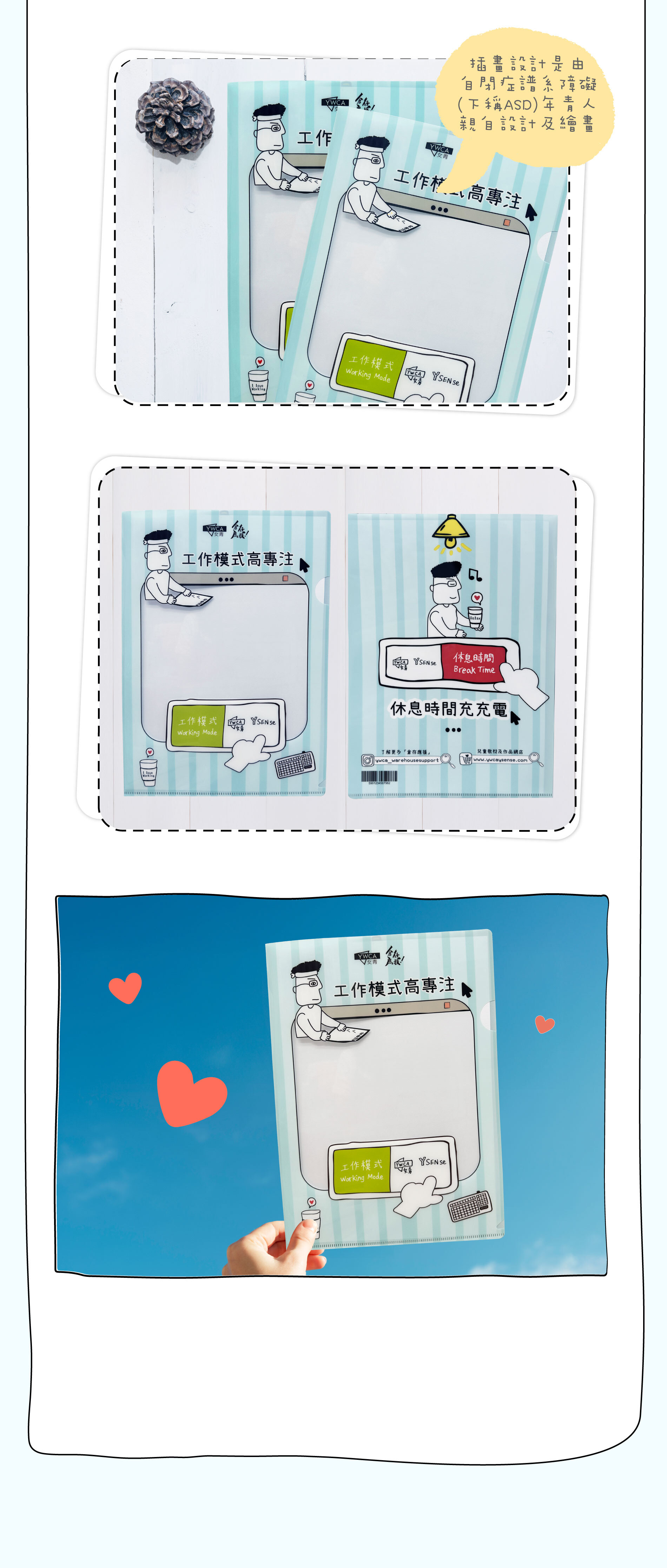 產品特色:文件夾的插圖是由自閉症譜系障礙(下稱ASD)年青人親自繪畫及設計